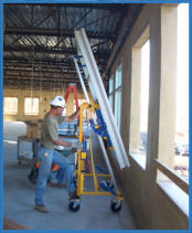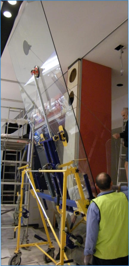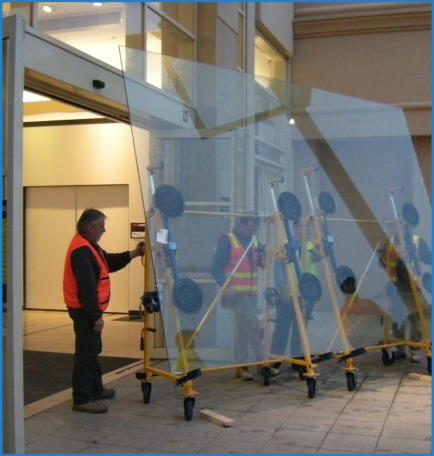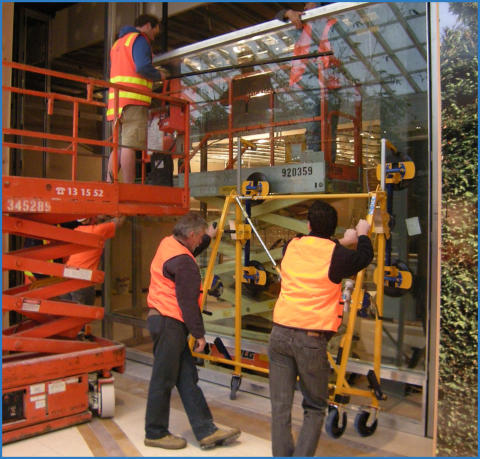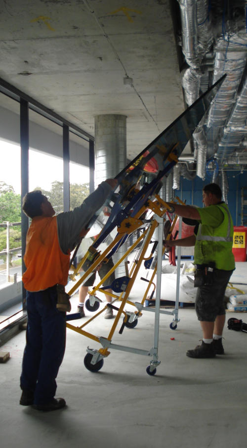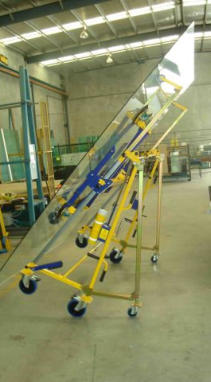 •Eliminates OHS issues such as strains and sprains resulting from manual handling of glass.•Reduces man power required for transportation and installation of heavy glass by up to 50 percent.•Prevents breakages and damage to glass in transport and installation.•Protects the workers whilst carrying glass.•Rotate long plates of glass.The Quattrolifts Nomad is designed to assist glaziers to unload, transport and install glass safely. It has a lifting capacity of 400 Kg's (880 Lbs). It can rotate glass measuring upto 4400 mm (180"). It has adjustments to allow for side and top pocket glazing. The Nomad is the world's first patented labour saving, cost effective device which offers a safer option to the manual handling of glass, slate and board on site.The Nomad was designed and developed by an Australian Chiropractor and Occupational Health and Safety Consultant, that assists glaziers with the installation, transportation and rotation of glass weighing up to 400 kg (880 lb).The Nomad has received the following awards: 2005 2nd Place - Best Solution For Sprain and Strain Injuries, WorkSafe Vic Australia Award; 2005 Finalist Engineers Australia Award; 2004 Invention Of The Year Award. The Nomad complies with all relevant European directives.