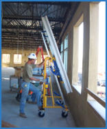 Optional Outrigger Legs quickly attach to the back side of the Nomad to allow installers to rotate large glass sheets in low ceiling areas .